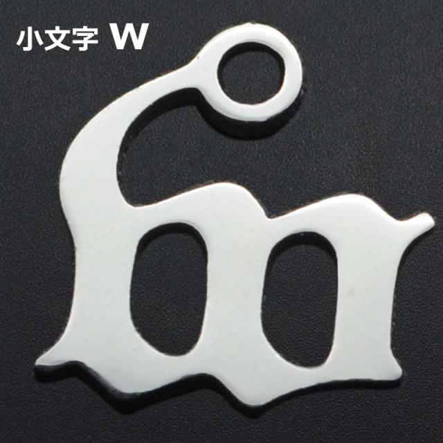 ゴシックアルファベットステンレスパーツ(小文字:w) 1個販売 英語 メッセージ イニシャル レター 文字 チャームパーツ メンズ レディース 部品 金具 DIY ペンダントトップ アクセサリーチャーム ピアス クラフト 手作り ネックレス ハンドメイド ブラックレター w ダブル
