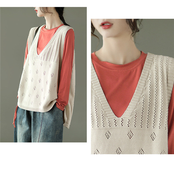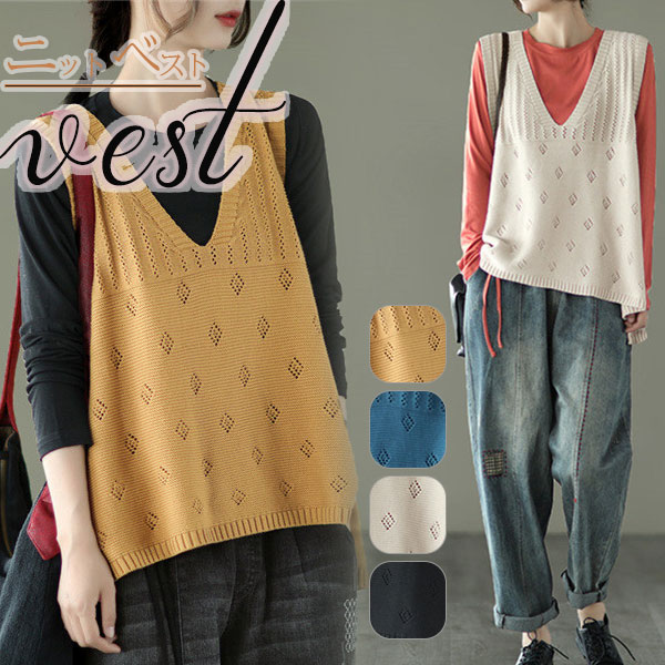 ポイント増量中 数量限定 ニット ベスト タンクトップ vネック レディース メッシュ トップス 無地 大きいサイズ コーデ 40代 秋冬 仕事 カジュアル 体型カバー