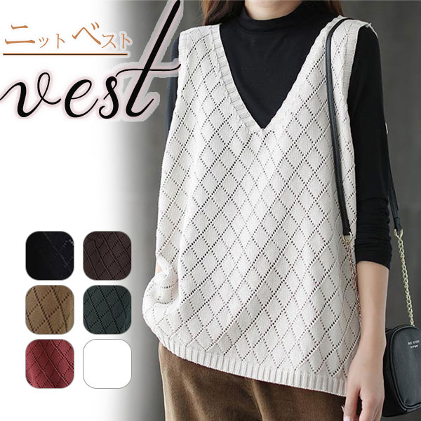 スマプレ超祭り ベスト レディース ニット vネック タンクトップ メッシュ ノースリーブ スウェット プルオーバー 秋服 通勤 体型カバー 無地 着痩せ ゆったり