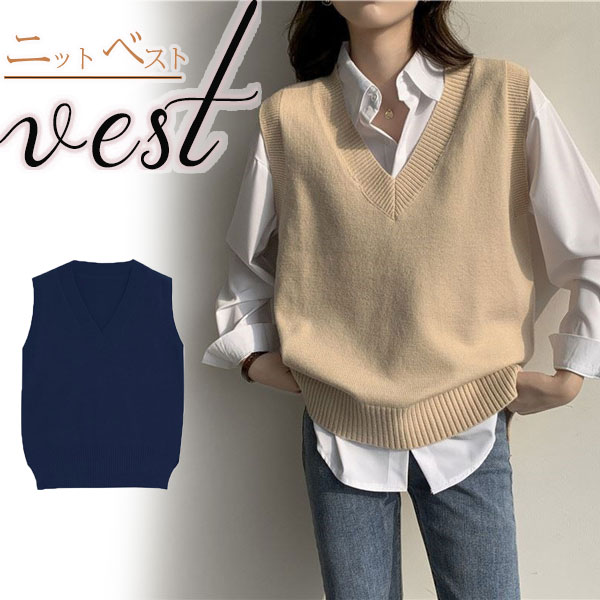 スマプレ超祭り ベスト レディース ニット タンクトップ vネック ノースリーブ スウェット ゆったり プルオーバー 秋服 通勤 体型カバー 40代 無地 着痩せ