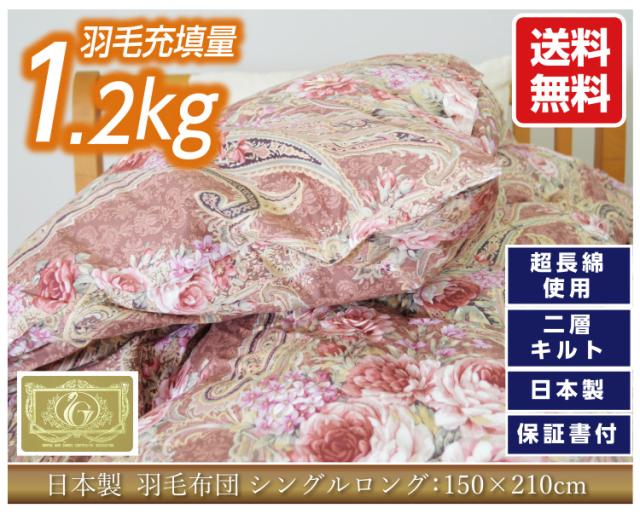 フランス産 羽毛 ロイヤル 1.2kg ホワイトダウン93% 60サテン シングル 二層キルト ダウンパワー400dp以上 超長綿 ロング 秋冬 日本製【品名:ヴィクター】 ゴールドラベル 掛け布団