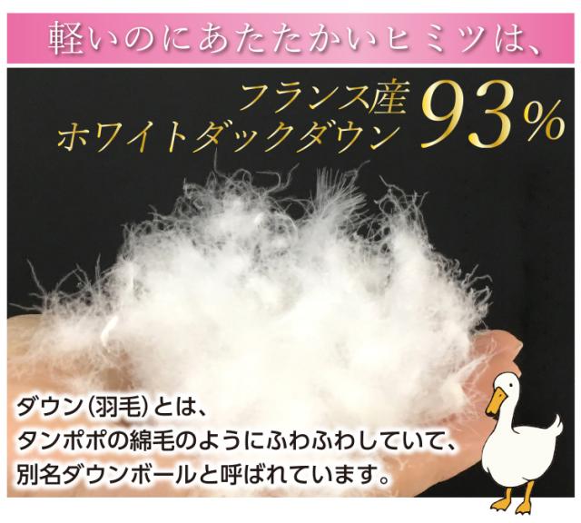 | 組 成 | 側生地:超長綿100%(60サテン) 中羽毛:フランス産ホワイトダックダウン93% |