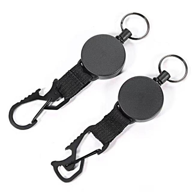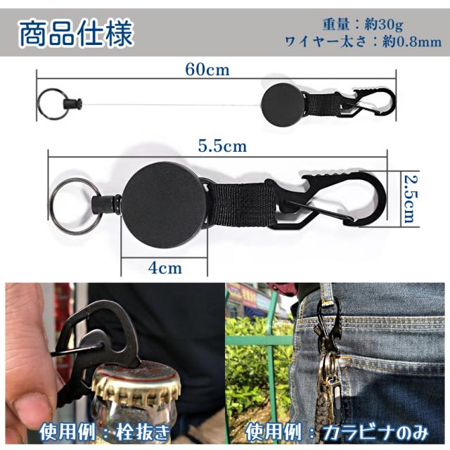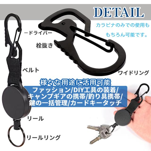 リール キーホルダー カラビナ 2個 セット 伸縮式 キーリング キーリール 伸縮 コードリール 鍵 釣り キャンプ ギア アウトドア 栓抜き 伸縮リール 伸びる 落下 紛失 防止 2-KEYLILLE 送料無料