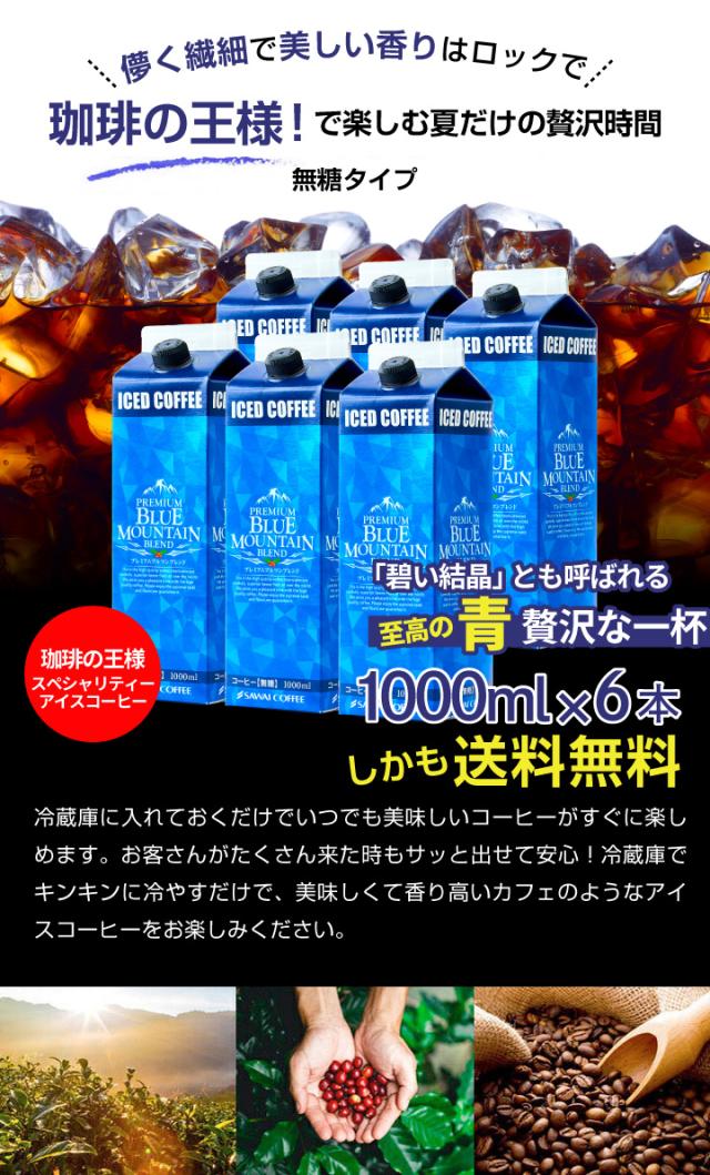 送料無料 アイスコーヒーリキッド プレミアムブルマンブレンド 無糖 1000ml 6本 アイスコーヒー リキッド ブルーマウンテン ブルーマウンテンブレンド ブルマン プレミアム 澤井珈琲 珈琲 高級 スペシャリティー 贅沢 おしゃれ 無添加