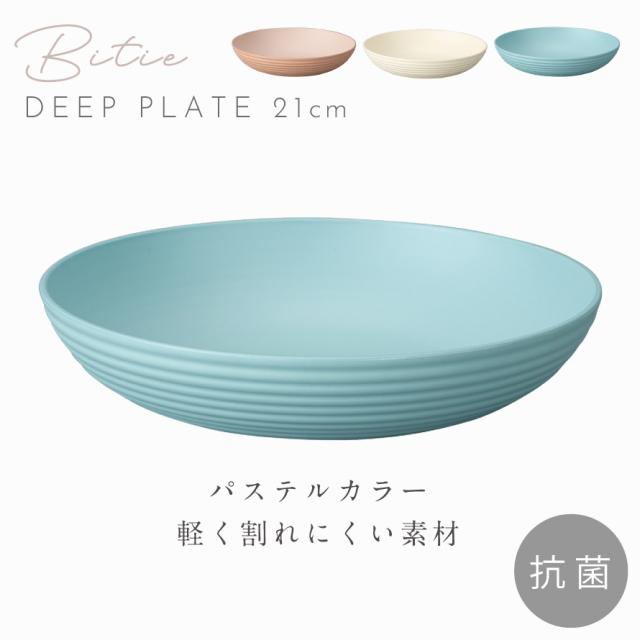 皿,21cm,プレート,深皿,カレー皿,パスタ皿,丸皿,丸,お皿,食器,食洗機対応,レンジ対応,食洗機,電子レンジ,レンジ,電子レンジ可,割れない,割れにくい,軽い,軽量,BPAフリー,プラスチック,樹脂,樹脂製,日本製,bitie,ミタニ,料理,盛り付け,パーティー,レジャー,アウトドア,キャンプ,グランピング,バーベキュー,BBQ,ピクニック,おしゃれ,かわいい,オシャレ,お洒落,可愛い,ナチュラル,シンプル,モダン,カフェ,インスタ映え,くすみカラー,アースカラー,ブルー,青,ベージュ,アイボリー,カレー,パスタ,スパゲッティ,オムライス,