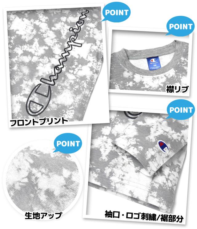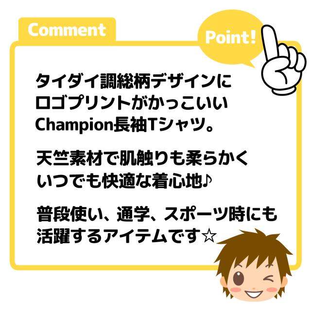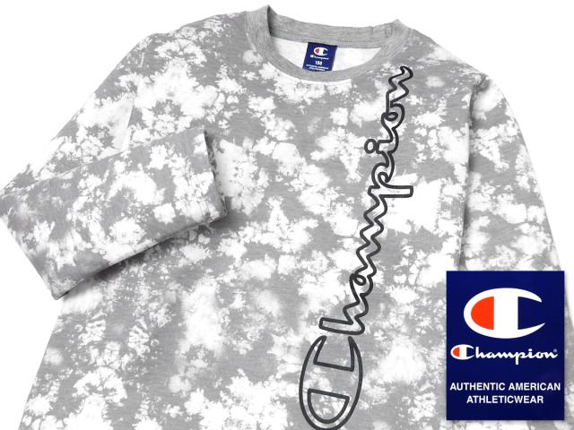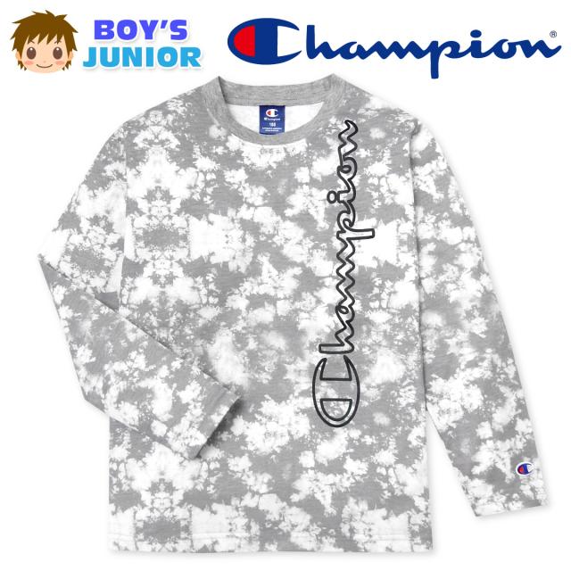 【送料無料】男児 ジュニア 天竺 長袖 Tシャツ Champion タイダイ調総柄 刺繍 綿混 子供服 男の子 td-0515a-gy【メール便対応】