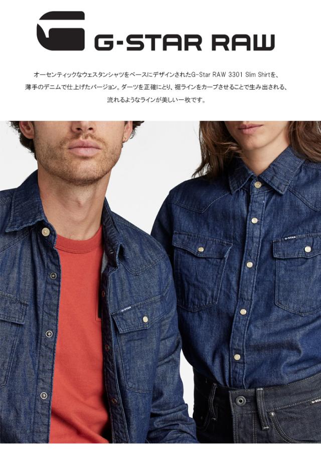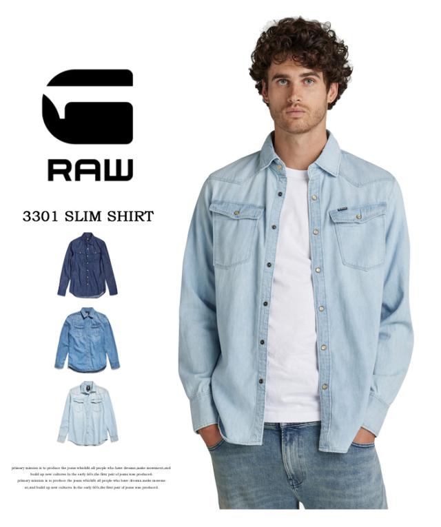 G-STAR RAW ジースターロウ UNISEX 3301 SLIM SHIRT ウエスタン デニムシャツ メンズ 送料無料 D12697-D013