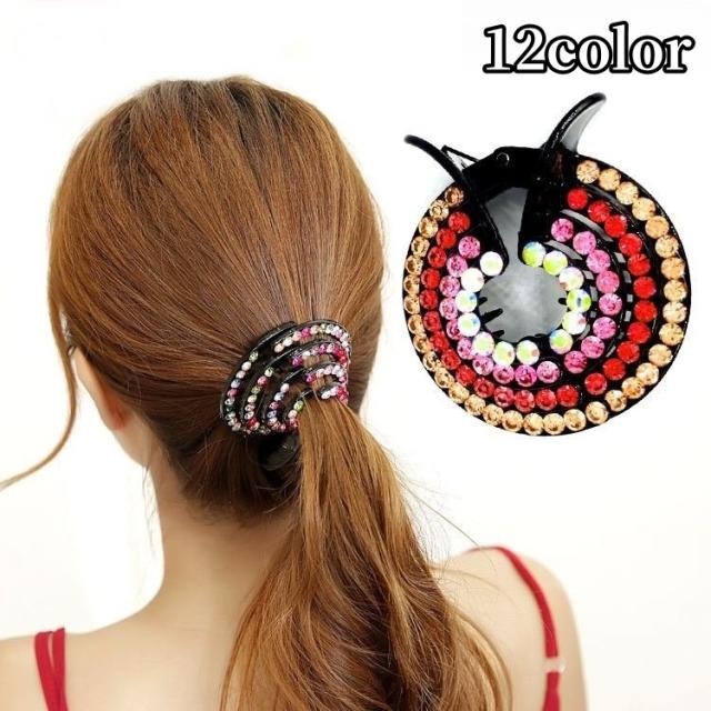 バンスクリップ ヘアクリップ レディース 大人 ヘアアクセサリー ラインストーン サークル 円形 大きめ しっかり ポニーテール