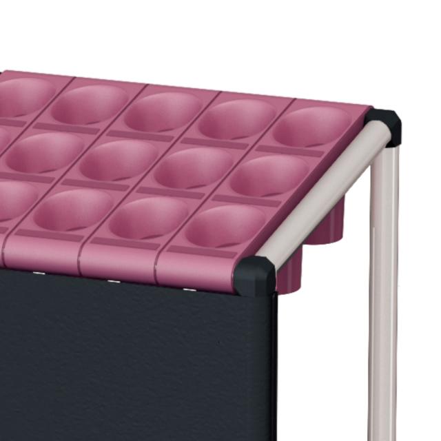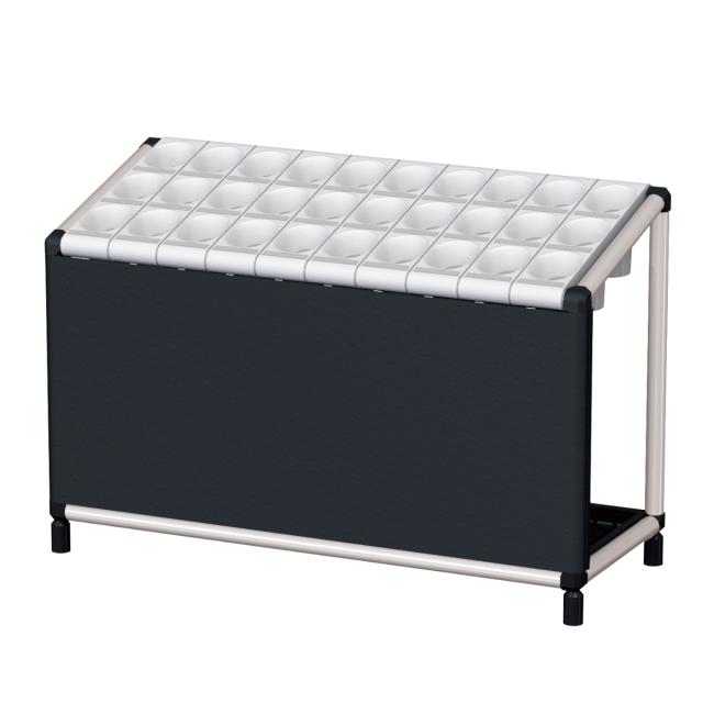 1本の傘を1マスに収納するスリーブ式の傘立てです。3色のカラー展開で、設置場所に応じてお選びいただけます。幕板付きなので傘を収納してもスッキリとまとまった印象を与えてくれるほか、グループの明示化・案内サインとしての機能をもたせることもできます。