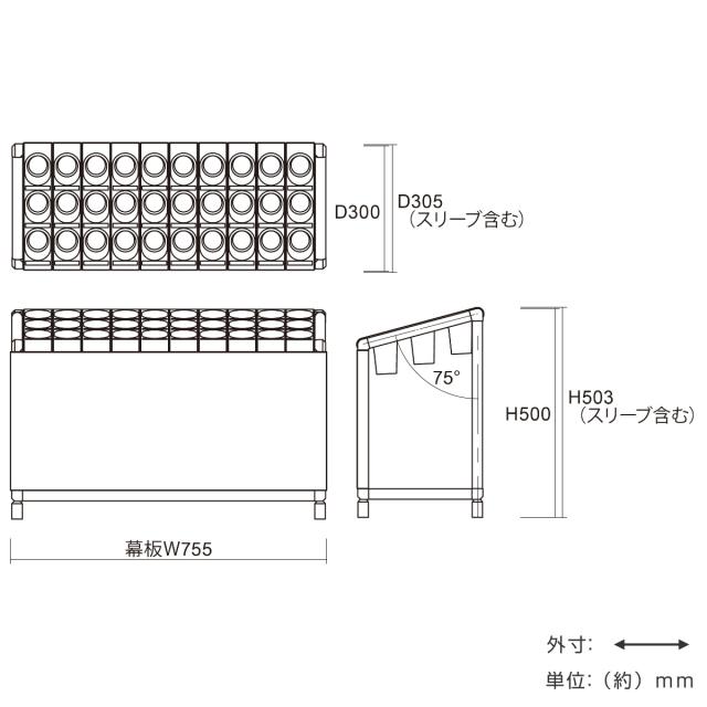 | 材質 | 本体:ステンレスクラッド管 スリーブ:ABS樹脂 幕板:電気亜鉛メッキ鋼板粉体塗装サテンブラック 水受皿:再生ABS樹脂 |