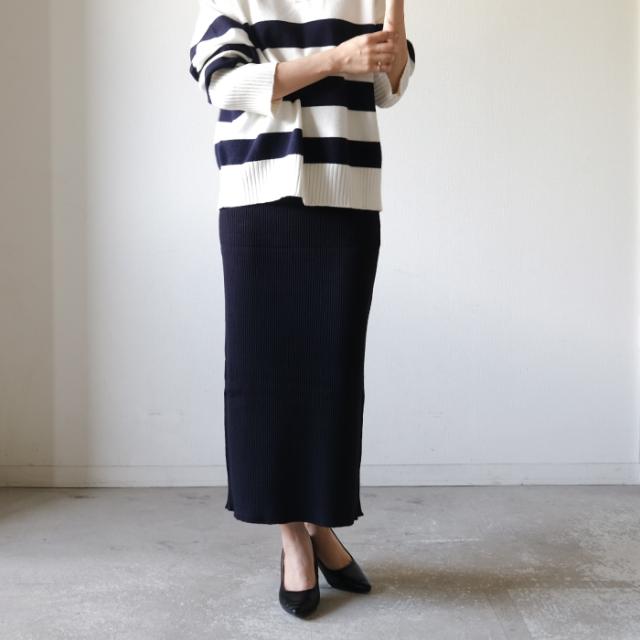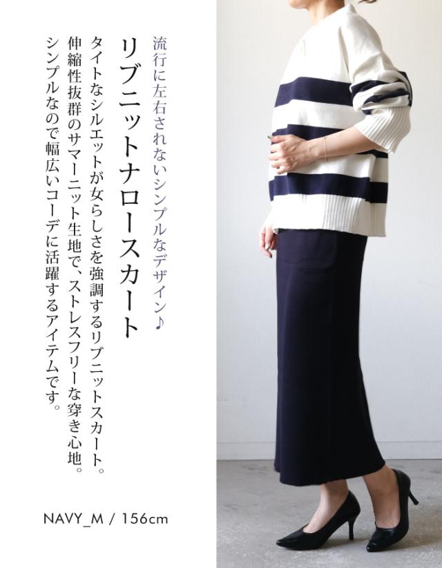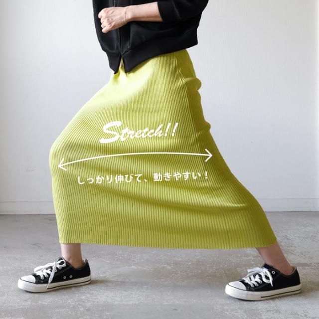 タイトなシルエットが女らしさを強調するリブニットスカート。 伸縮性抜群のサマーニット生地で、ストレスフリーな穿き心地。 シンプルなので幅広いコーデに活躍するアイテムです。