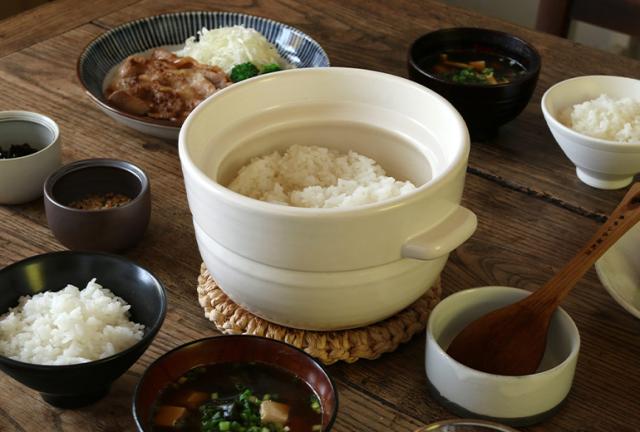 三重県の萬古焼の技術をいかした食器や食に関わる道具を作る「かもしか道具店」のごはんの鍋。 | |||