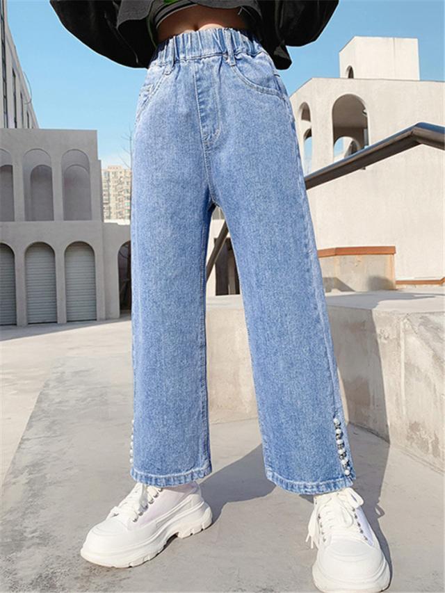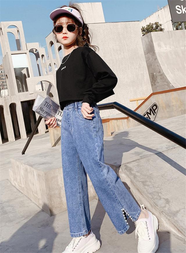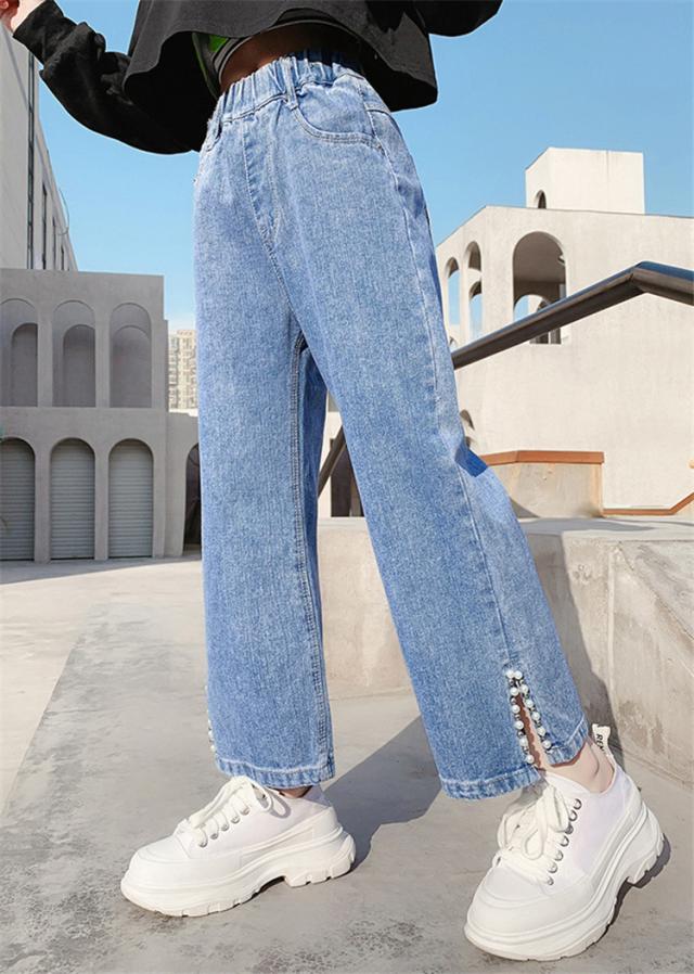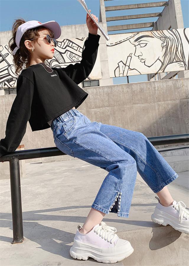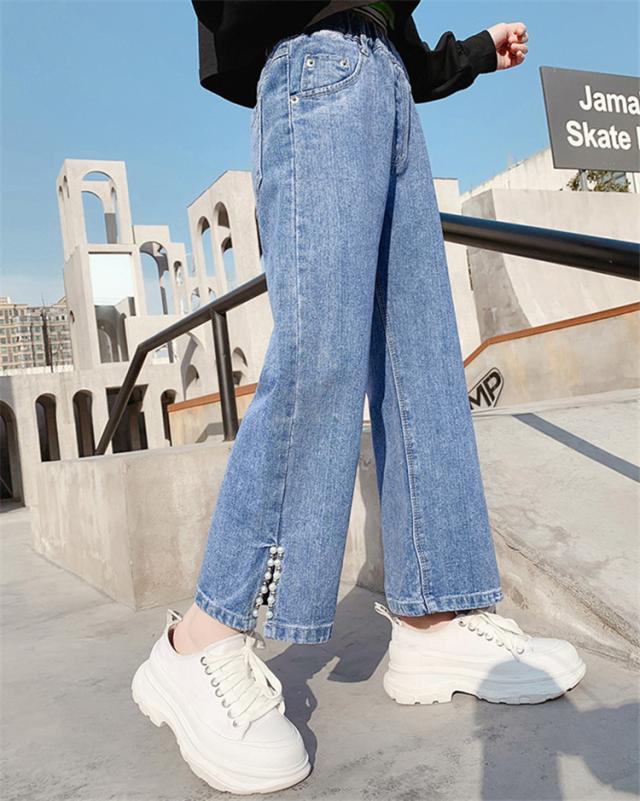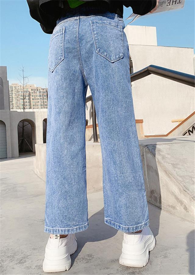 デニムパンツ キッズ 子供服 女の子 ロングパンツ ガウチョパンツ 長ズボン 春服 ボトムス ストレッチパンツ ウェストゴム 伸びる ジーンズ 韓国子供服 おしゃれ