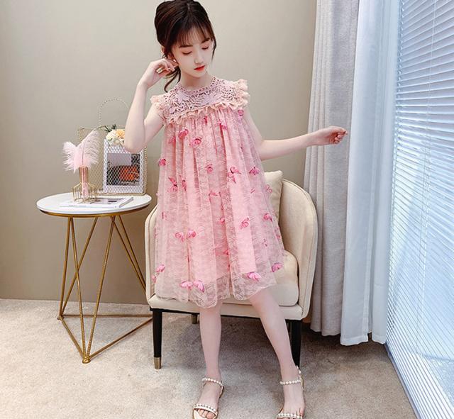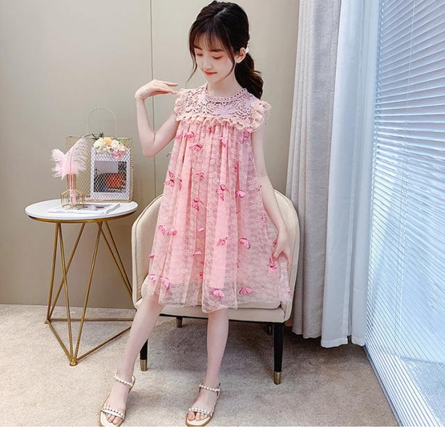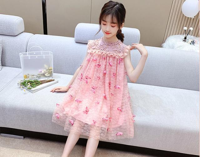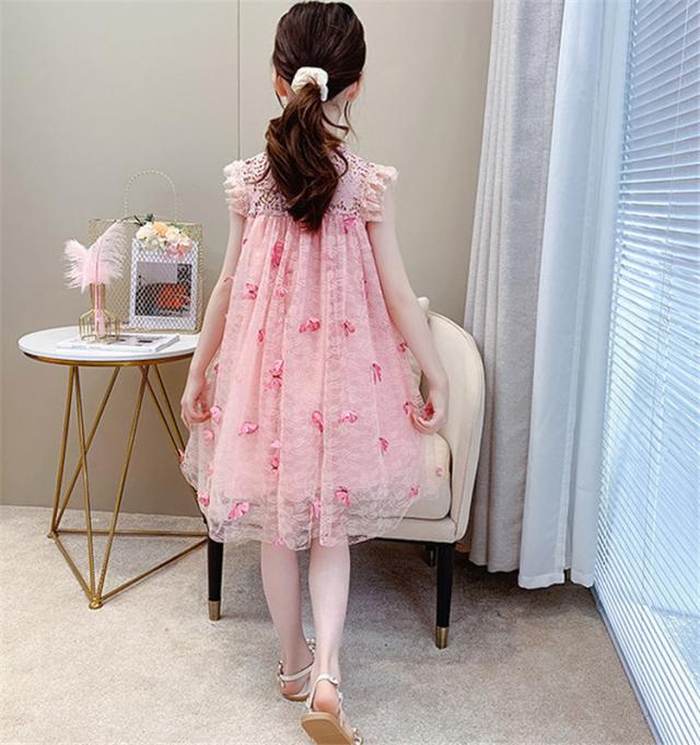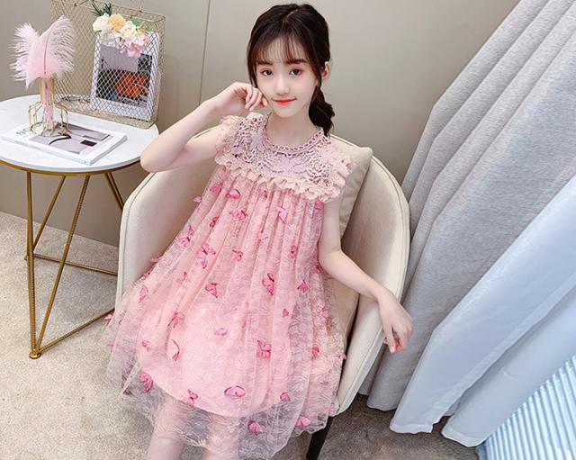 子供服 ワンピース ピンク 160 韓国子ども服 キッズ 女の子 夏服 レースワンピース 蝶々 子供ドレス 結婚式 誕生日 ベビー服 ジュニア お姫様 おしゃれ 可愛い