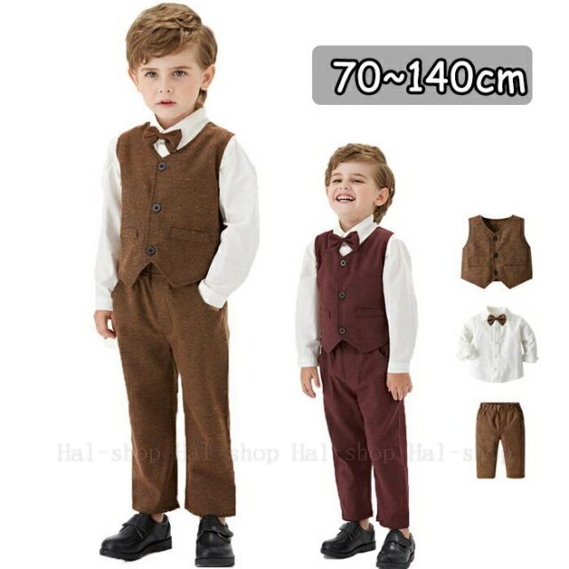 入学式スーツ 男の子 子供スーツ 男の子 ベビーフォーマル スーツ 長袖 無地ベスト上下セット 子供 キッズ