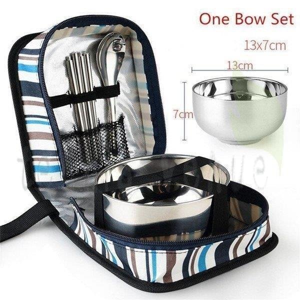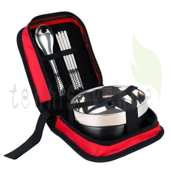 ステンレス鋼 食器 キャンプ カトラリー 折りたたみ箸 スプーン ボウル ピクニック 屋外 セットバッグ 1人用