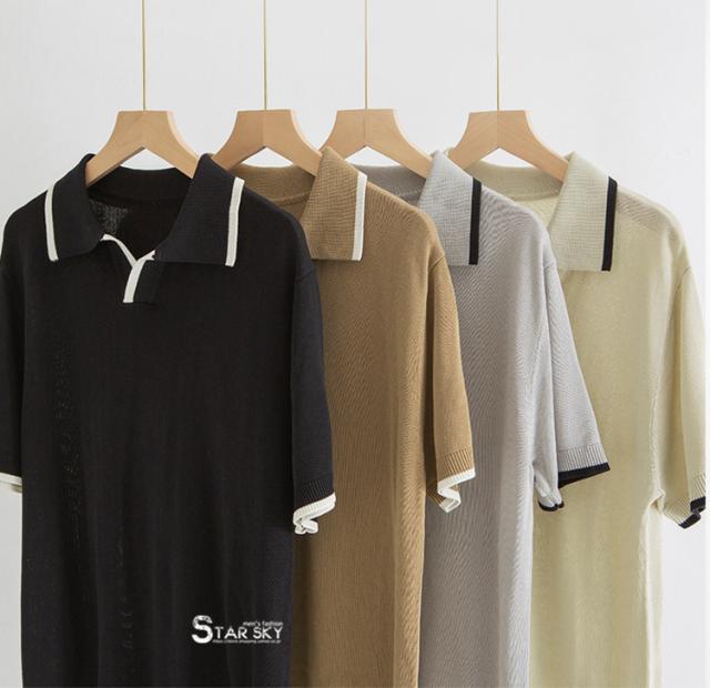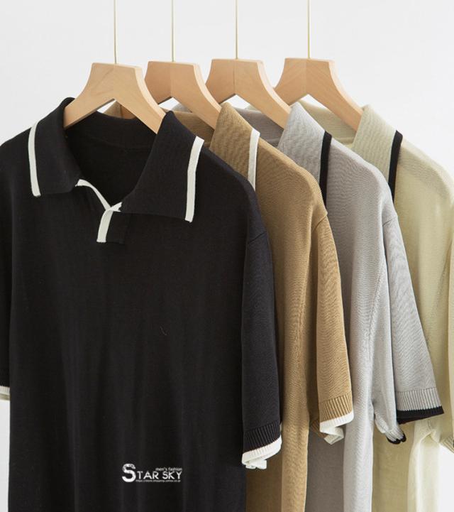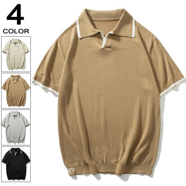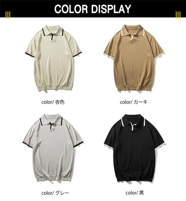 ゴルフウェア メンズ ポロシャツ 半袖 切り替え 冷感 ニット リブ編み 無地 夏 涼しい 薄手 スポーツ 40代 50代