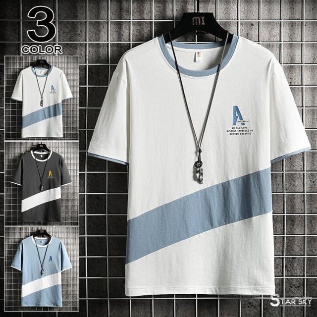 Tシャツ メンズ おしゃれ カットソー 半袖 プリントTシャツ 英字柄 トップス 配いろ メンズTシャツ メンズファッション