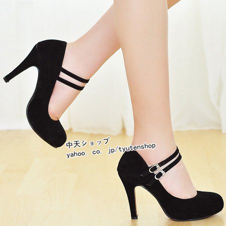 パーティーパンプス厚底大きいサイズおしゃれパンプス 太めヒールストラップ付きセクシー10cmヒール美脚パンプス靴通勤結婚式二次会パンプス22〜24.5cm