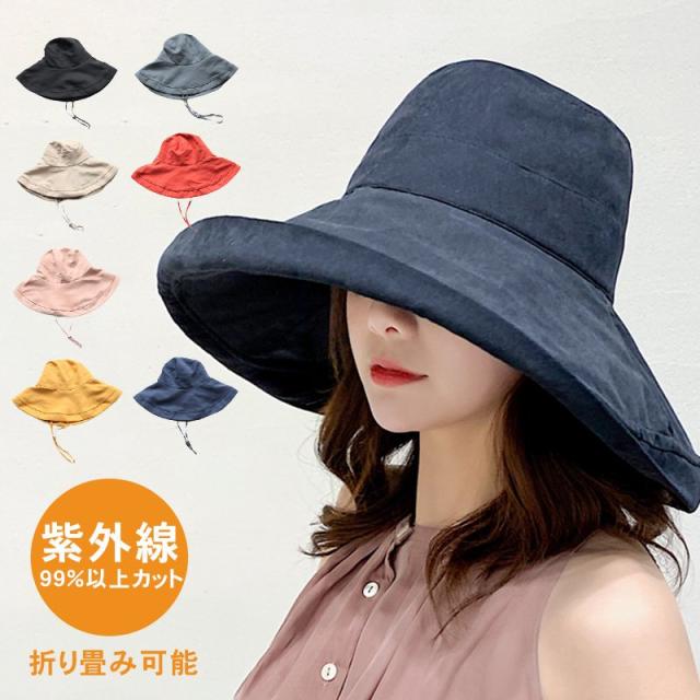 帽子 レディース つば広 ハット UV 紫外線カット サファリハット 完全遮光 サイズ調整可能 紐付き麻ポリブリム 日よけ 折りたたみ 飛ばない 小顔効果