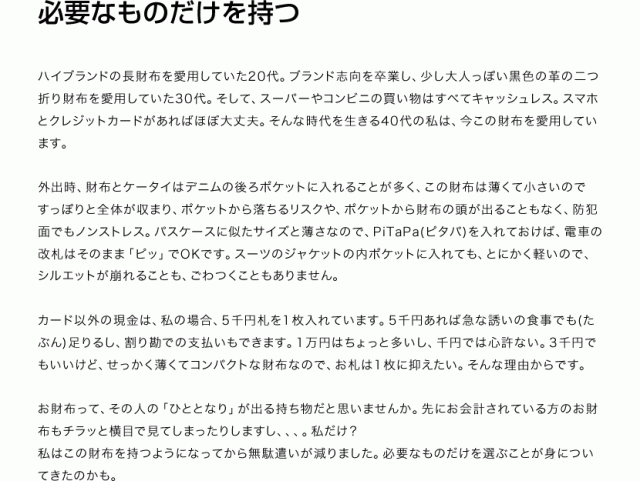 このコンパクト財布は現代のマネークリップと言っていいかもしれません。お札ではなくカードを束ね、最小サイズで最大の実用性を備えたマネークリップあらためカードクリップ。大きなお財布も便利で実用的ですが、無駄を省いたこの小さなお財布も、時代に沿ったデザインでいいと思います。