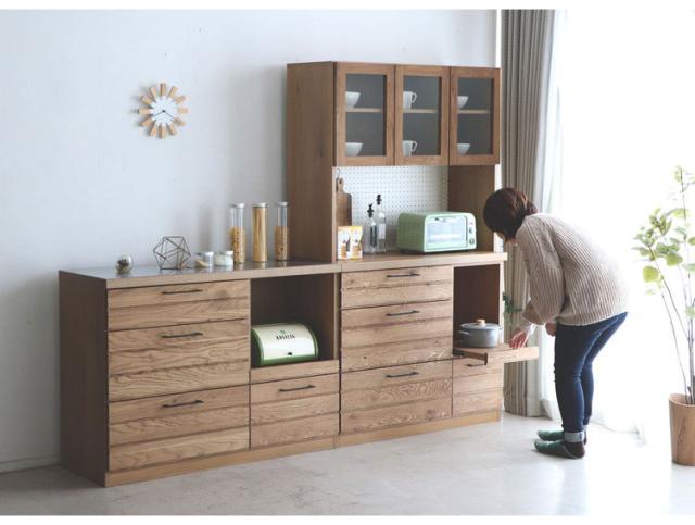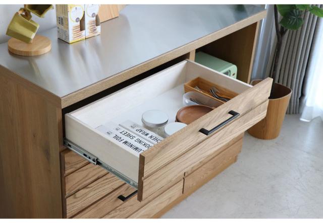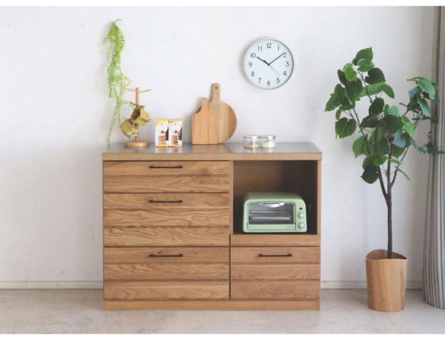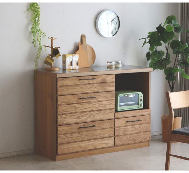 日本製 キッチンカウンター 完成品 ステンレス天板 幅119 レンジ台 引き出し スライド棚 食器棚 パセリ ヴィンテージ調 国産 キッチン収納 おしゃれ(代引不可)【送料無料】