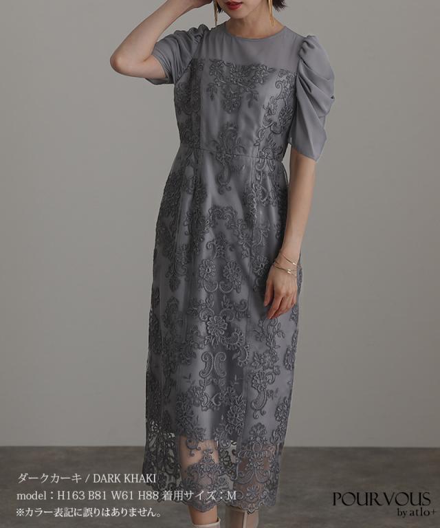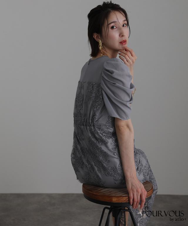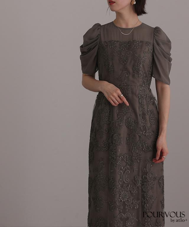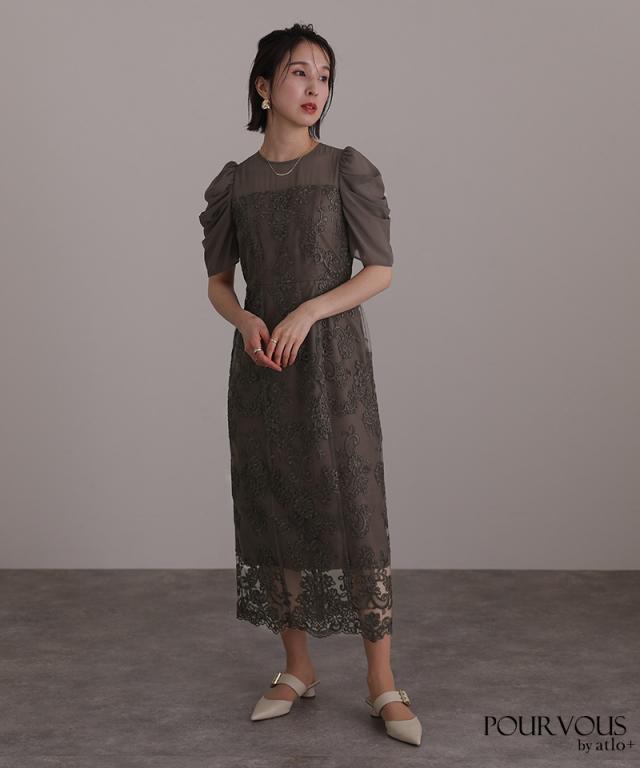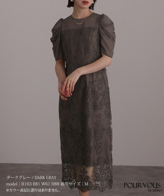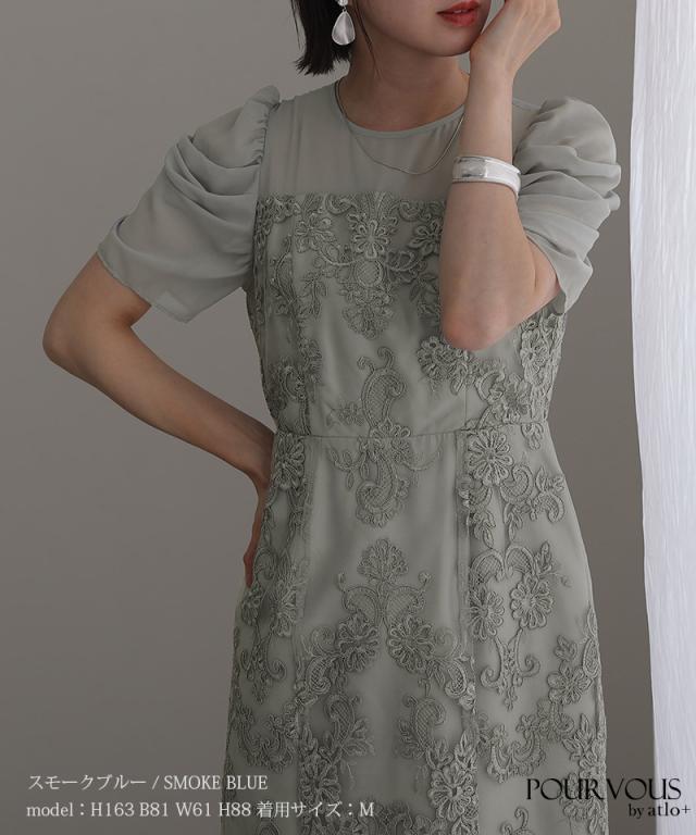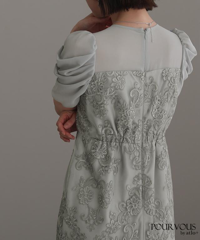 ギャザースリーブ刺繍レースワンピース【238221638】20代・30代・40代・54代長袖・膝丈・セットアップ・スカート・体型カバー・ジャケット・テーラード・スーツ・大きいサイズなど・即日発送・送料無料結婚式・婚活・披露宴・顔合わせ・二次会・同窓会・お呼ばれ・食事会・謝恩会・親族・七五三・お宮参り・冠婚葬祭・弔事・女子会・デート・入学式・卒業式・入園式・卒園式・ママ・マタニティー・セレモニー・セレブ・パーティー
