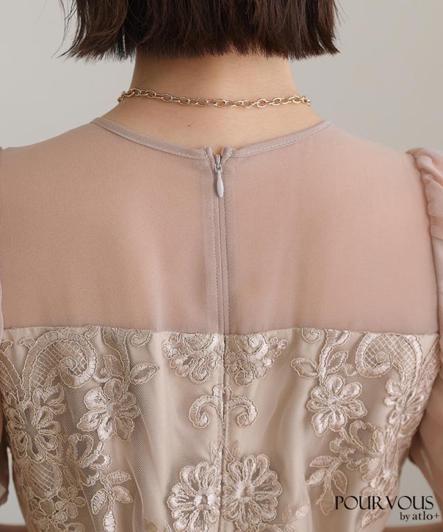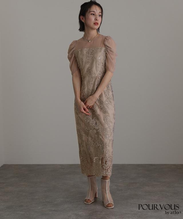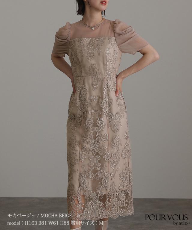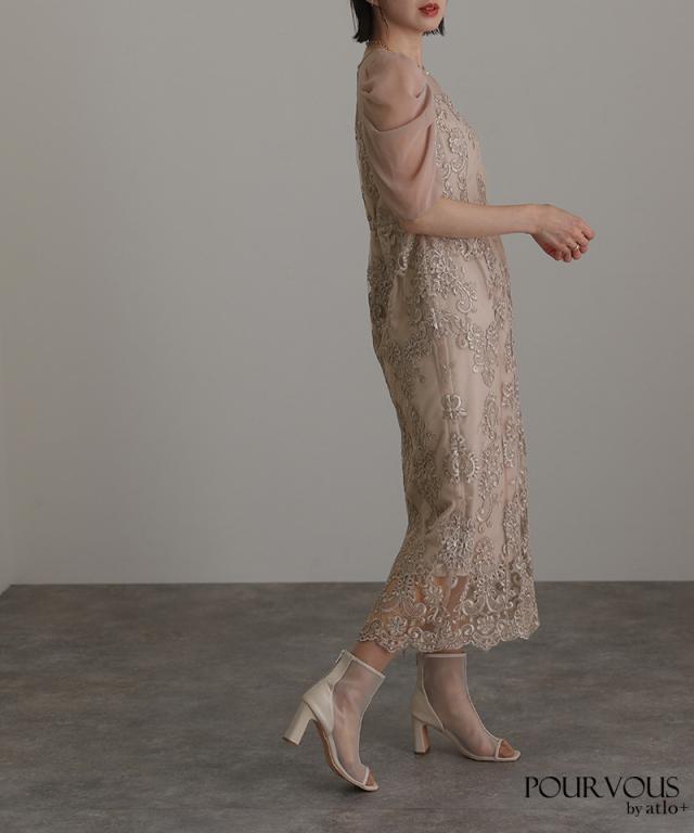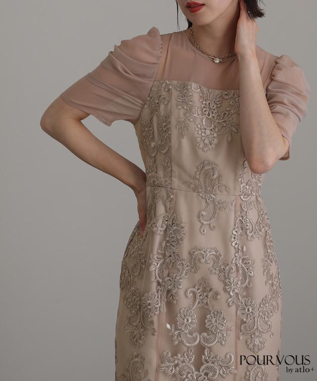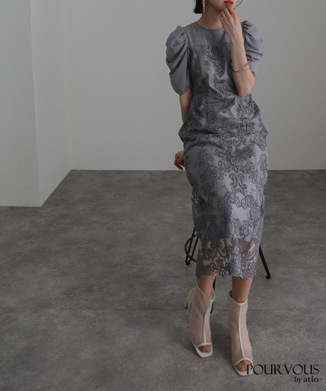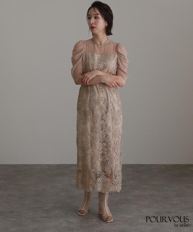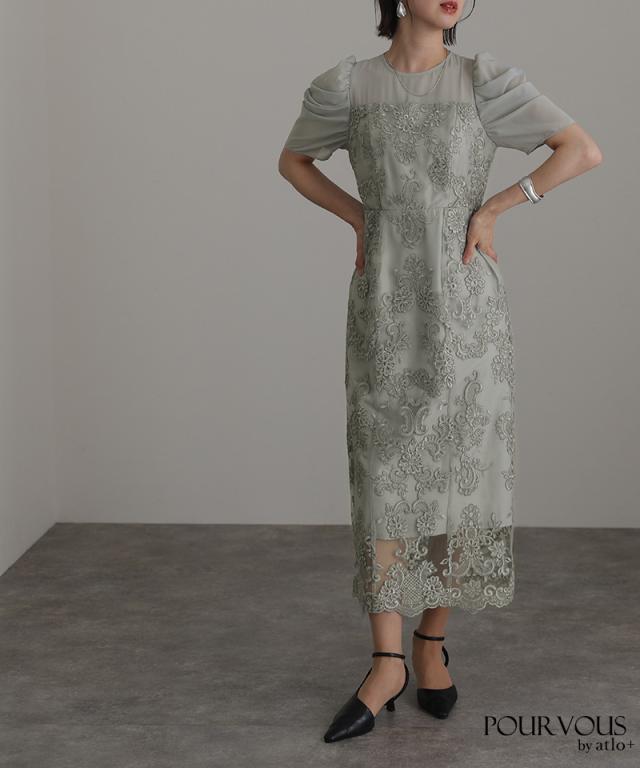 ギャザースリーブ刺繍レースワンピース【238221638】20代・30代・40代・54代長袖・膝丈・セットアップ・スカート・体型カバー・ジャケット・テーラード・スーツ・大きいサイズなど・即日発送・送料無料結婚式・婚活・披露宴・顔合わせ・二次会・同窓会・お呼ばれ・食事会・謝恩会・親族・七五三・お宮参り・冠婚葬祭・弔事・女子会・デート・入学式・卒業式・入園式・卒園式・ママ・マタニティー・セレモニー・セレブ・パーティー