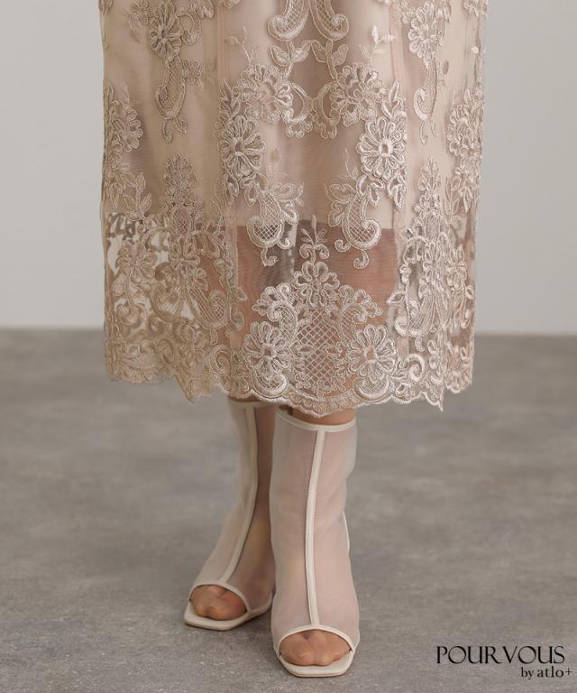 甘すぎない花柄の刺繍レースで大人スタイルのコーデにもおすすめなドレスです。