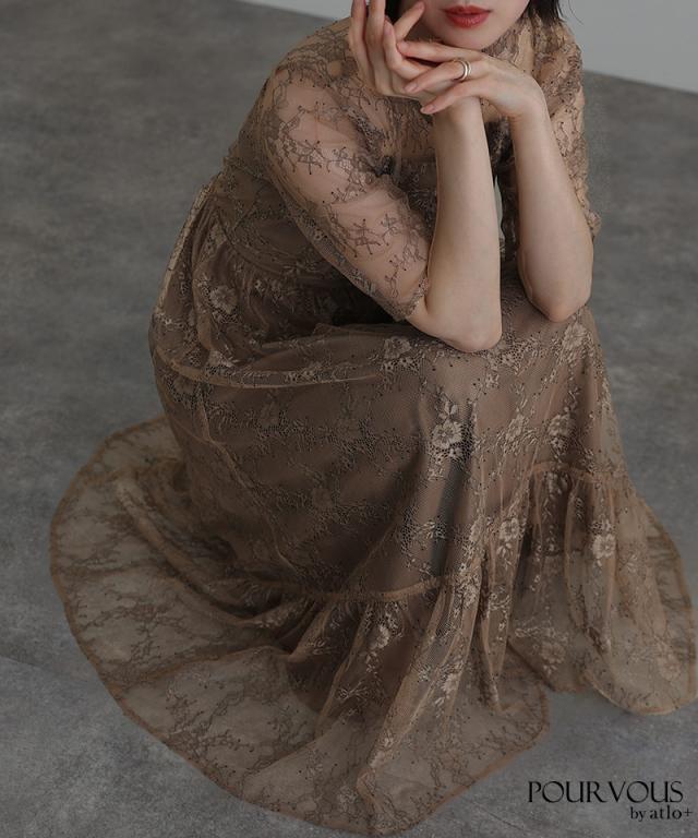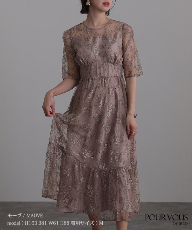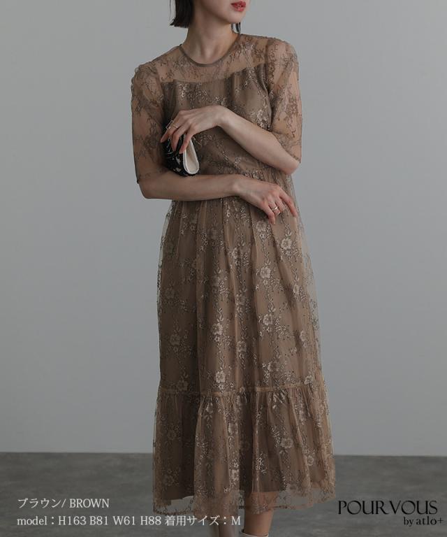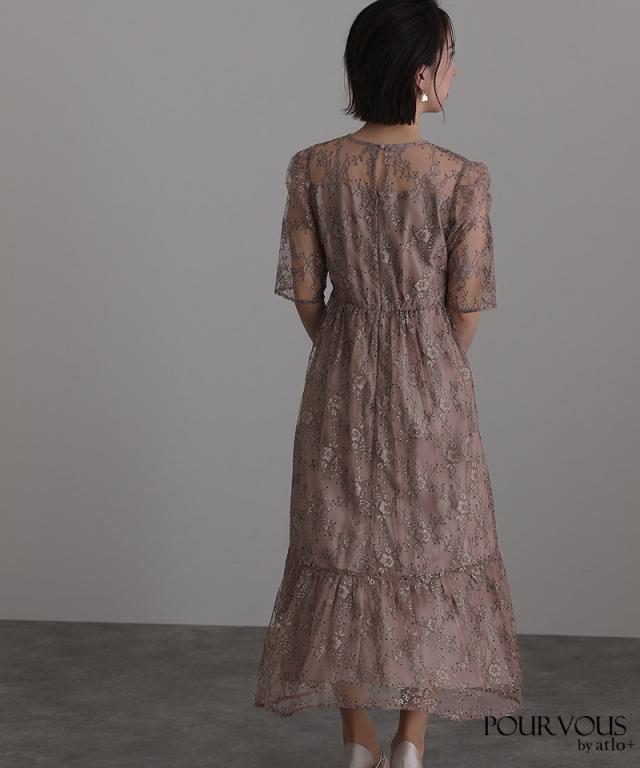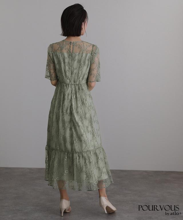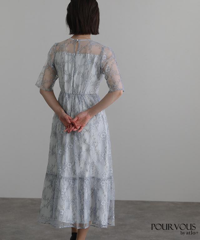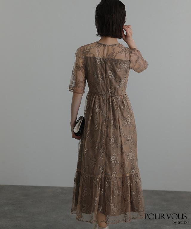 上品な花柄総レース仕上げのワンピースです。