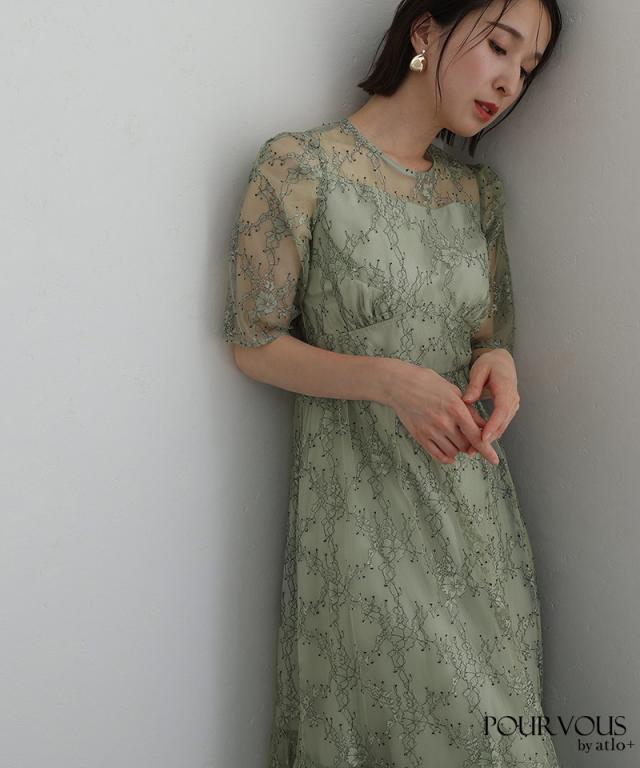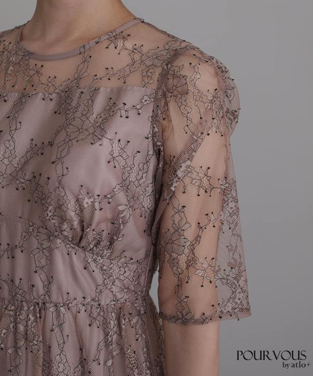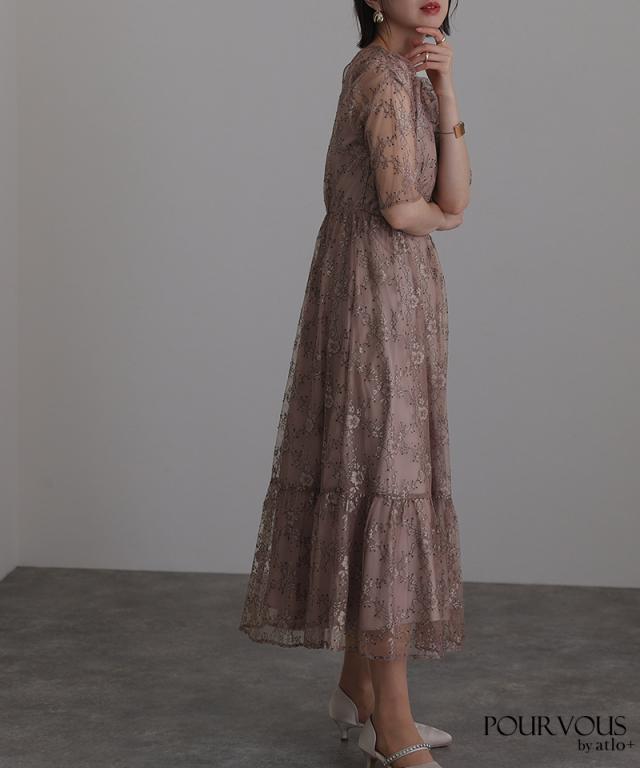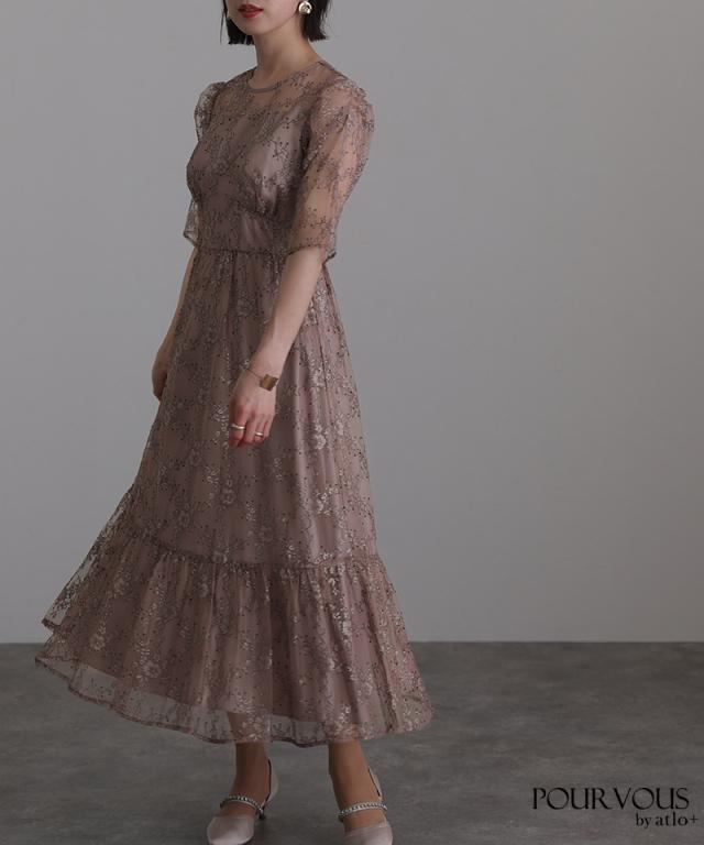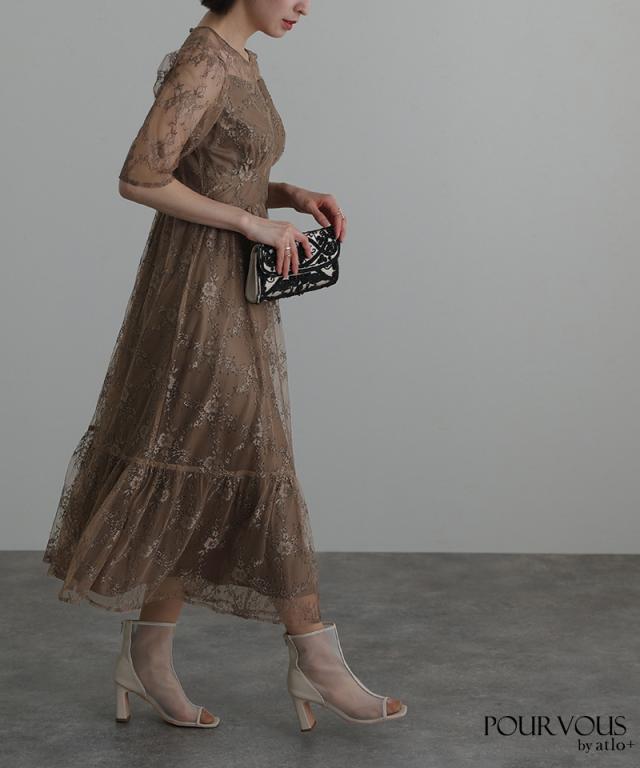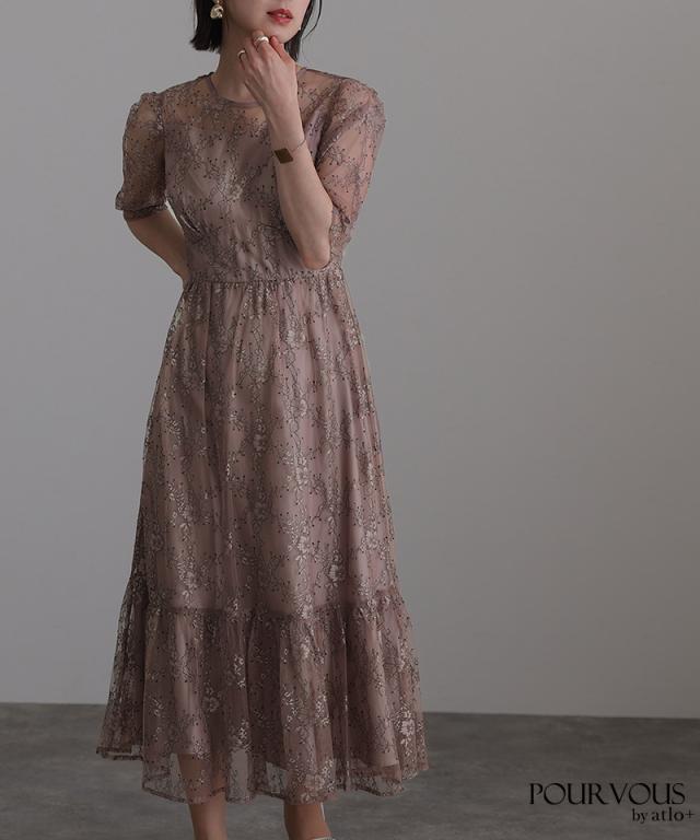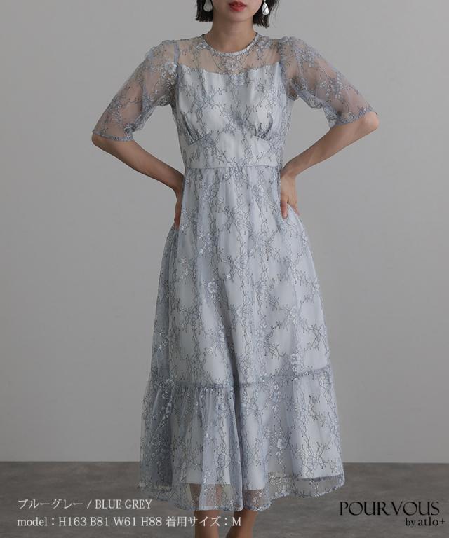 上品な花柄総レース仕上げのワンピースです。