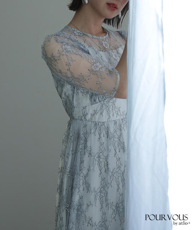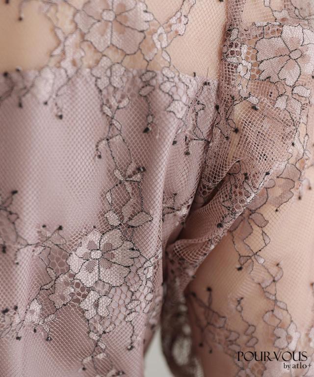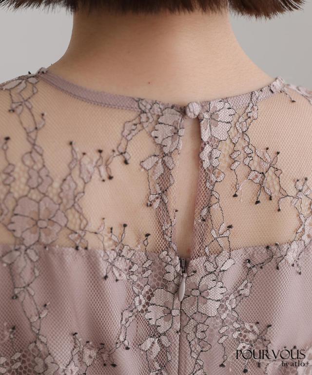 デコルテ部分の透け感があるレースがエレガントさを演出。