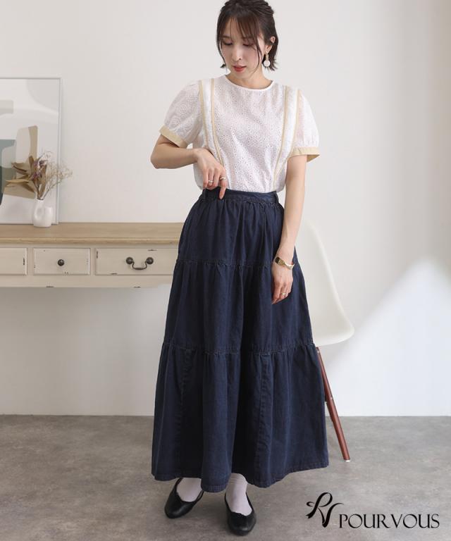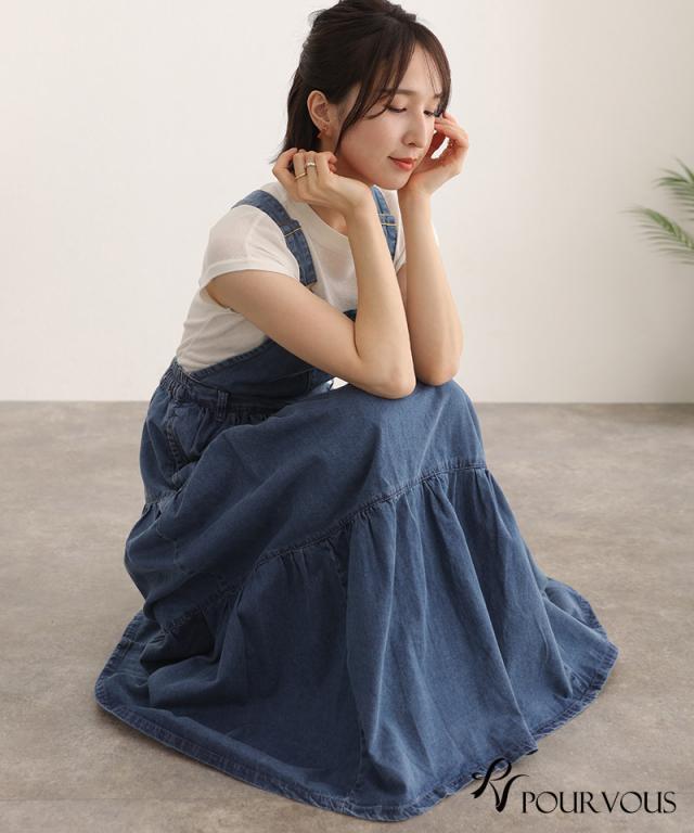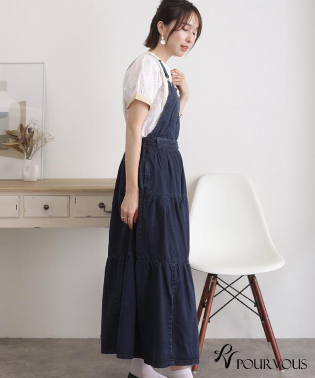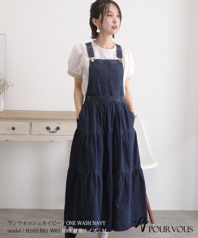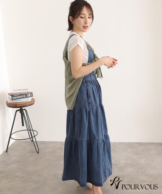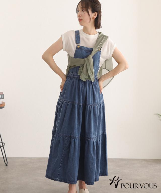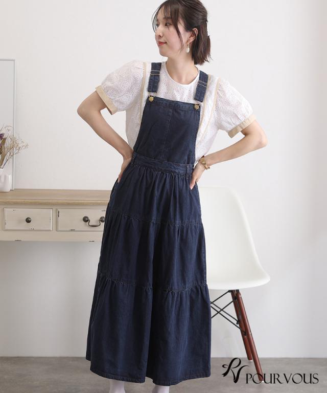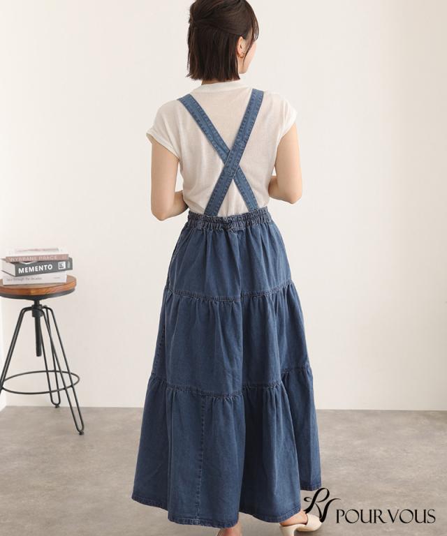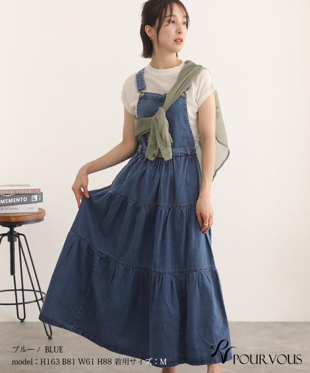 デニムティアードサロペットスカート【321221926】20代・30代・40代・50代ボトムス・レディース・カジュアル・ロング・ミモレ丈・膝丈・ウエスト・ゆったり・コーデ・フレア・シンプル・タイト・台形・薄手・厚手・無地・刺繍・花柄・可愛い・キレイめ・着やせ・新作・レース・上品・セットアップ・体型カバー・スタイルアップ・小さいサイズ・3Lや4L・・即日発送・送料無料・オフィス・ワーク・オールシーズン・デイリー・普段着・オケージョン・セミフォーマル・婚活・顔合わせ・同窓会・お呼ばれ・食事会・謝恩会・親族・七五三・お宮参り・冠婚葬祭・弔事・女子会・デート・入学式・卒業式・入園式・ママ