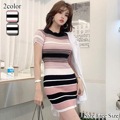 【グラシア】 キャバ ドレス キャバドレス ワンピース ミニドレス シルエット タイト ストレスフリー ニット 伸縮性 グレー ピンク フリーサイズ