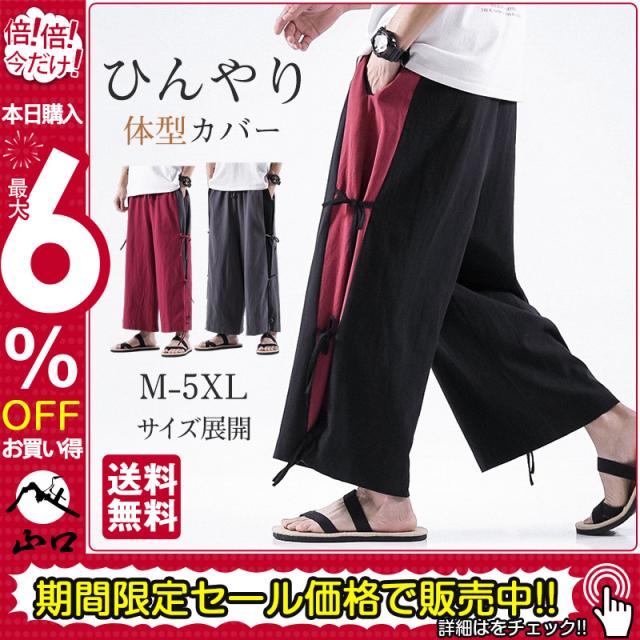 ワイドパンツ メンズ ガウチョパンツ バギーパンツ 大きいサイズ 太め ゆったり ひんやり 無地 ウエストゴム イージーパンツ 涼