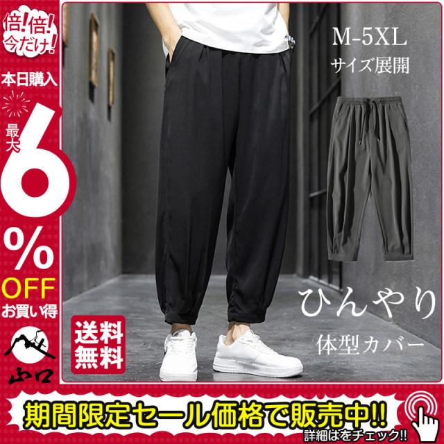 ワイドパンツ メンズ ガウチョパンツ バギーパンツ 大きいサイズ 太め ゆったり ひんやり 無地 ウエストゴム イージーパンツ 涼