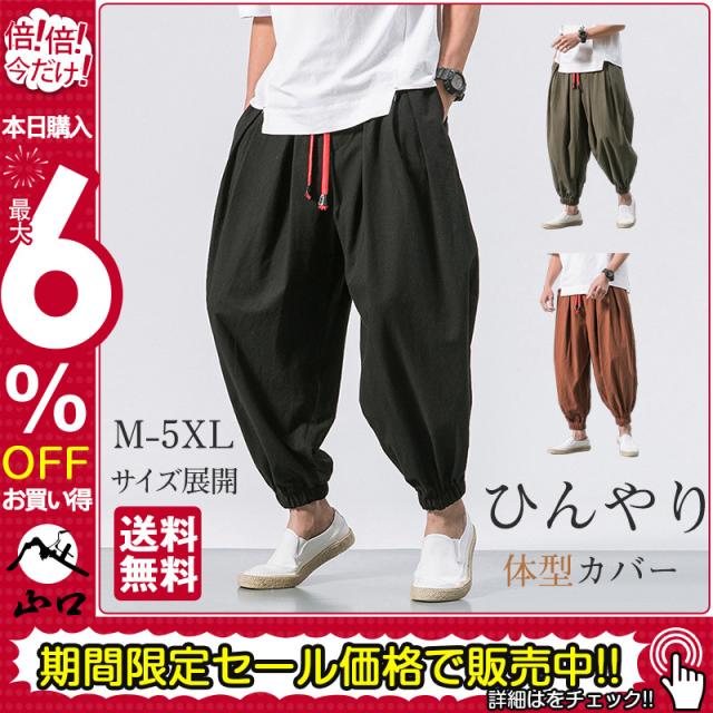 ワイドパンツ メンズ ガウチョパンツ バギーパンツ 大きいサイズ 太め ゆったり ひんやり 無地 ウエストゴム イージーパンツ 涼