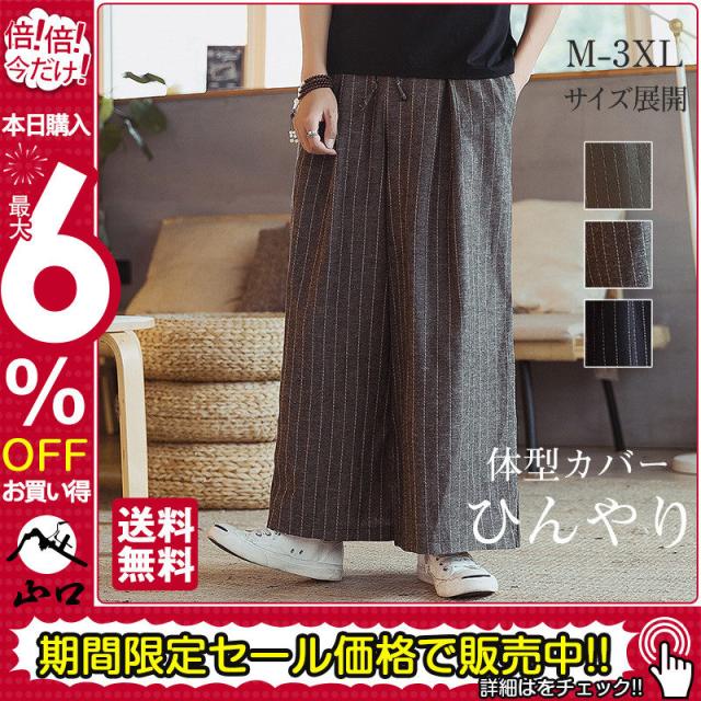 ワイドパンツ メンズ ガウチョパンツ バギーパンツ 大きいサイズ 太め ゆったり ひんやり 無地 ウエストゴム イージーパンツ 涼