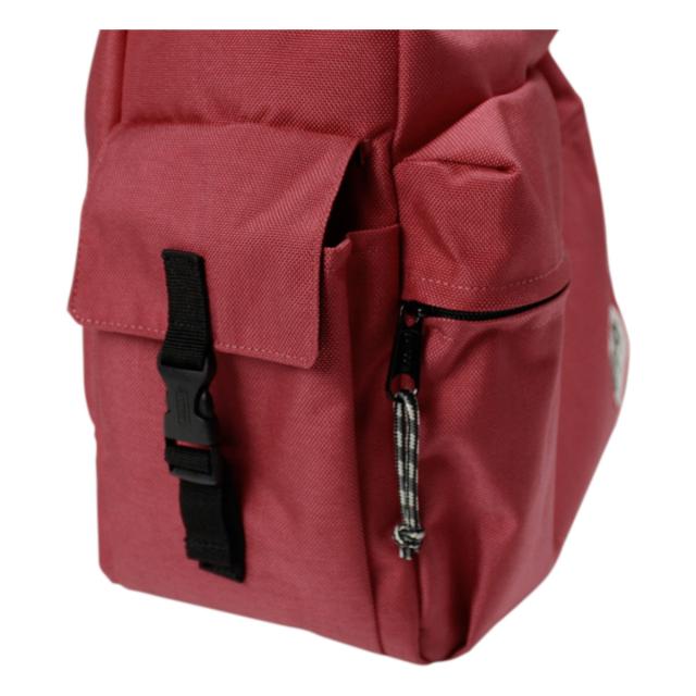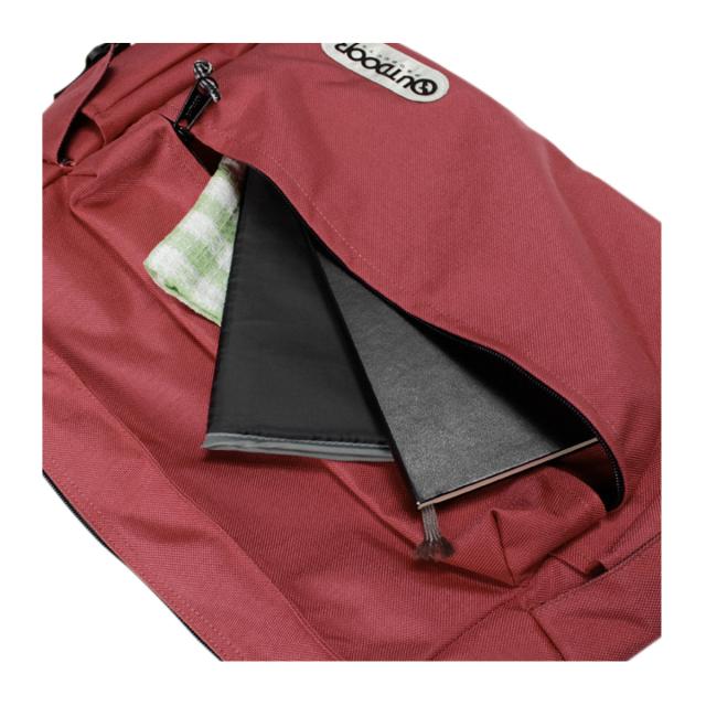 丈夫な生地と豊富なカラーバリエーションで個性を演出。内装は吊りポケットがついており、小物が収納できます。仕切りがなくレイアウト自由自在で大容量です。前ポケットはマチ付きなので厚みのあるものにも対応できます。サイドにはボトルも収納可能なポケット付きです。