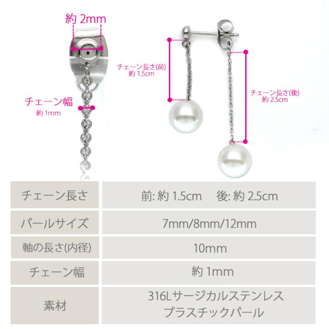 金属アレルギー対応 [EMBELLIR] ステンレスピアス パールキャッチチェーンピアス スタッドピアス 両耳用 真珠 サージカルステンレス