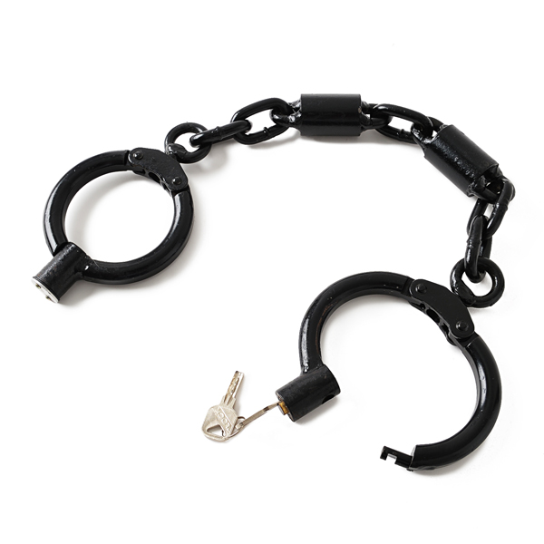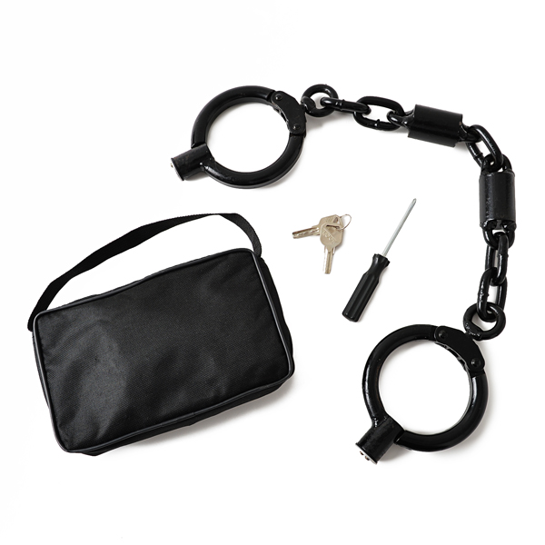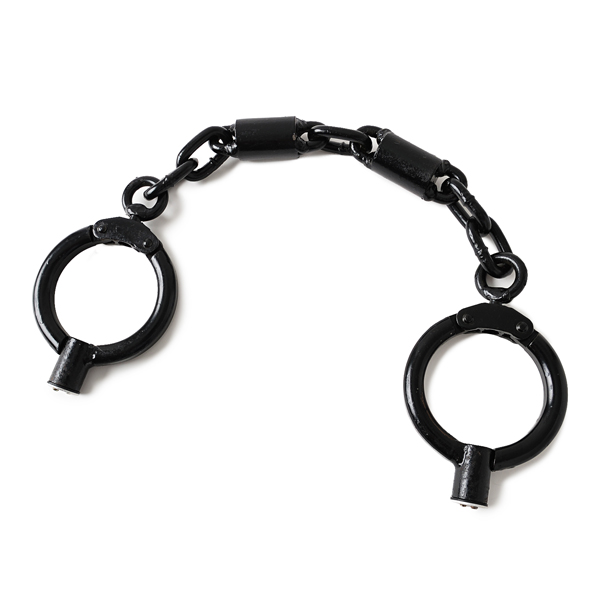 一般的な手錠のモデルとは違い、締め込み調節やダブルロック機構はありませんが、何よりシンプルで頑丈な足錠となっています。 お芝居や、コレクションにどうぞ