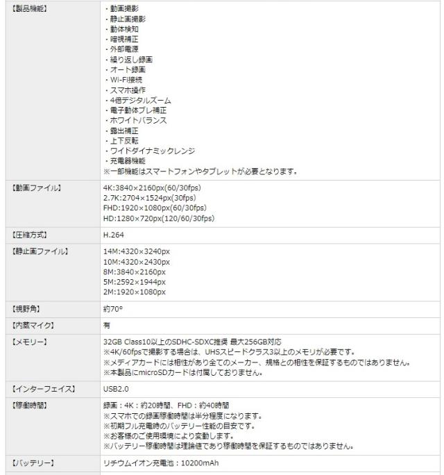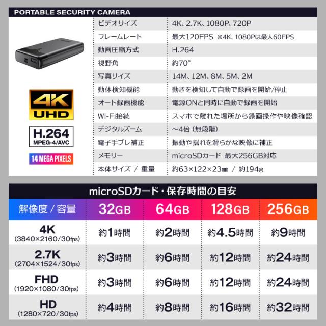 ■ 4K 充電器型カメラ【スパイダーズX】 GX-110スペック