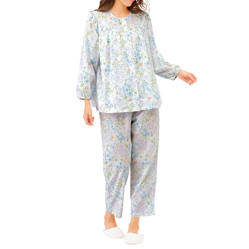 パジャマ 前開き レディース 日本製 京都捺染綿100%さらり楊柳パジャマ(全2色) 婦人服 ミセス シニア 女性 寝巻 寝間着 ピンク ブルー シニアファッション 50代 60代 70代 80代 母の日 お母さん fri p22611