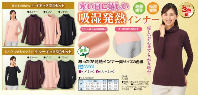 秋冬 あったか発熱インナー(3色組) インナー 肌着 レディース 婦人服 ミセス シニア 女性 下着 インナーシャツ 長袖インナー シニアファッション 50代 60代 70代 80代 母の日 お母さん fri p22031 p26417