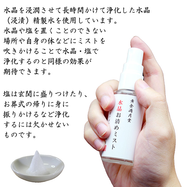 黄金満月堂 水晶お清めミスト 2本セット ‐お清めスプレー フレグランスミスト 水晶精製水 浄化 塩 水晶 クリスタル 厄除け お浄め 金運 健康運 邪気祓い 常陸国出雲大社