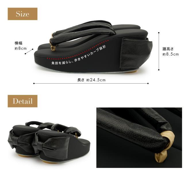 B、Cタイプは鼻緒と巻の後部にアクセントとして同素材のリボンが華やかなフォーマルなデザインです。