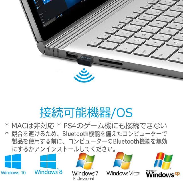 【Bluetooth4.0 USBアダプタ 対応機器/OS】: USBポートを搭載するパソコン。