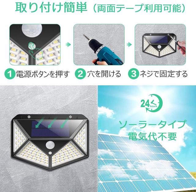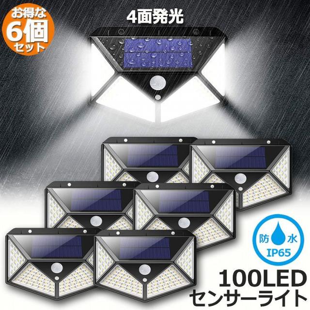 センサーライト 100LED 6個セット 屋外 ソーラーライト 4面発光 高輝度 防犯 人感 防水 屋外照明 300°照明範囲 防犯ライト 3つ知能モード 太陽光発電 庭 玄関 駐車場 通路 ガーデンライト 大活躍