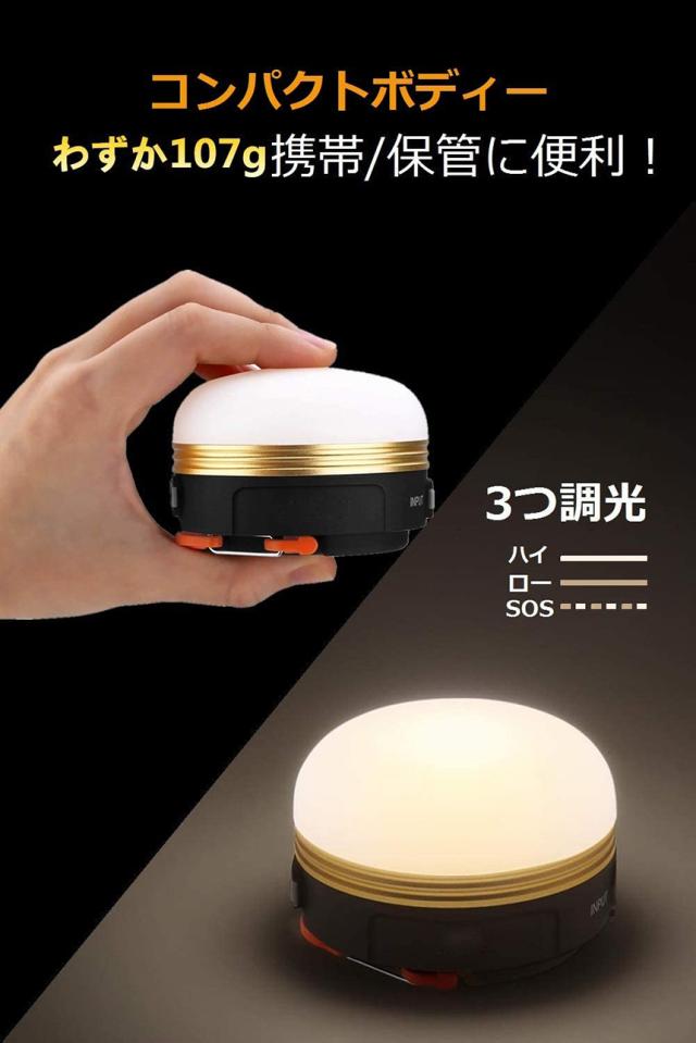 【小型かつ軽量】LEDランタンは直径70cm、高さ42cm、手のひらサイズのコンパクト設計。 小さく軽いので、アウトドア用としての持ち歩きや、非常時の持ち出し用にも便利です。三つ調光モードがあるので、強モード、弱モードSOS点滅モードも搭載、状況によって利用が可能です。