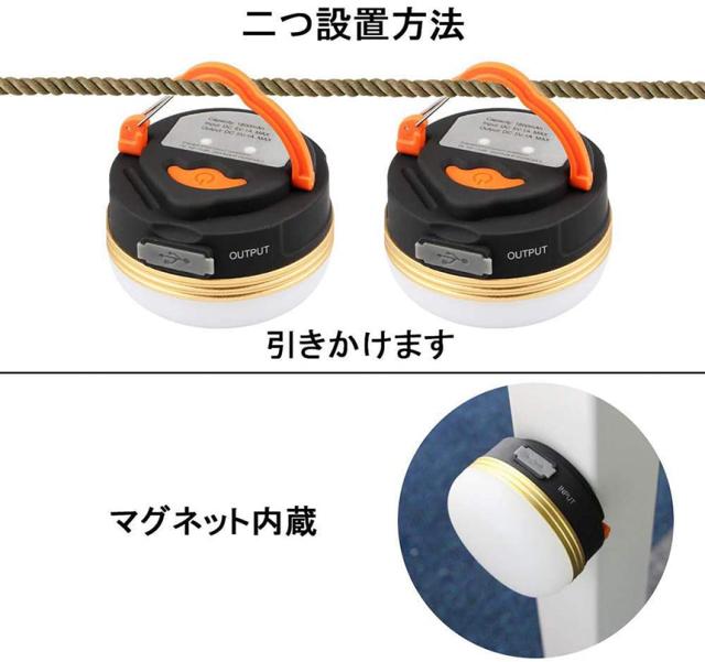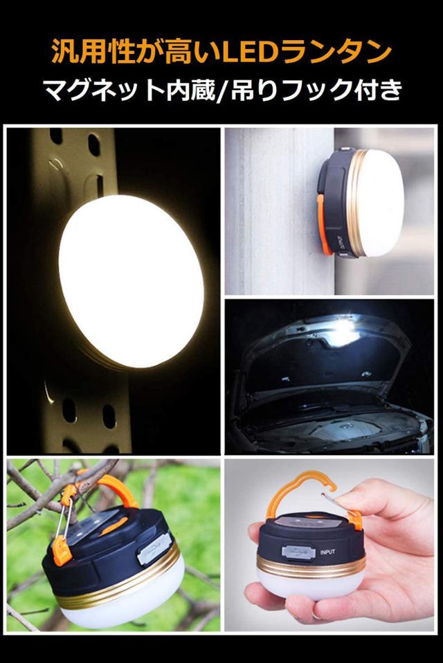 LEDランタン 充電式 懐中電灯 登山 夜釣り 携帯型 テントライト 2個セット 3つ調光モード マグネット式 フック付き 超軽量 小型 IP65防水 携帯便利 防水キャンプ用品 防災対策 高輝度 キャンプ ランタン